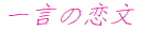 愛しています ただ、それだけを伝えたくて俺は今、筆をとっています。 ああ・・・書き出しはどうしよう・・・。 あまり幸福ではない子供時代を送った俺がこんなにも人を愛することが出来るなんて 信じられなくて・・・ きちんと寺子屋で読み書きも手紙の記し方も習ったはずなのに。 何も浮かんでこない。 拝啓。 なんて、はじまる恋文なんて固すぎて、まるで仕事の文書。 それなら、前略? 何を略すというのだろうか・・・・。 全く意味不明。 そんな形式ばった言葉を並べるくらいなら・・・いっそ名前だけのほうがいい。 でも。 名前は宛先に書くのだし・・・自分が直接その人に手渡すのだからわざわざ 書く必要もない。 ・・・・困った。 そんな思考に、俺は筆に墨をつけては紙の前で固まり・・・乾いてしまった筆に 再び墨を染み込ませる。 そんな作業の繰り返し。 時折、その筆からぽてりと墨が落ち、丸い黒い半点を作ってしまう。 書き直し。 まだ何も書いてはいないというのに・・・・。 紙が屑篭に溜まっていく。 ああ・・・・・・・もったいない。 て、そんなこと考えてる場合じゃないし。 出会いは本当に衝撃的で、決していい印象ばかりでは無かった。 でも、気づけば隣で笑っているあなたがいて。 俺も笑っていた。 いつ気づいたのだろうか。 この自分の気持ちに。 これがただの感傷じゃなくて、本当にあなたのことを・・・・・・・・・・・・・・・・。 「愛している」のだと。 ふと、空を見上げれば青い空が広がっている。 白いふんわりとした雲が漂い、知らず疲れていた目をばしばしさせた。 こんなに穏やかに空を見上げることができるのもあなたのおかげ。 暗い俺の心に光を灯してくれたあなたのおかげ。 ああ・・・・・・・・・「愛しています」。 心の中で思うのは簡単なのに、いざ文章にしようと思うと・・書くはしから真実が ぽろぽろと零れ落ちていくようで。 嘘くさくていけない。 何か・・・何か無いだろうか。 あなたに俺の気持ちを伝える一番の言葉が。 ぽてり。 ・・・・・・あ、また墨を落としてしまった。 ぐしゃ。 ぽいっ。 そしてまた考える。 俺は詩人じゃないし、そういう教養は皆無だ。 そんなことわかってる。 だけど。 伝えたいんだ、何よりもあなただけに。 ただ、傍に在る・・・この幸せ。 うん。 やっぱり一つしかない。 ストレートで何の面白みも無い言葉だけれど。 これをあなたに伝えます。 俺から心よりあなたに。 愛しています ただ、それだけを文字にして。 |